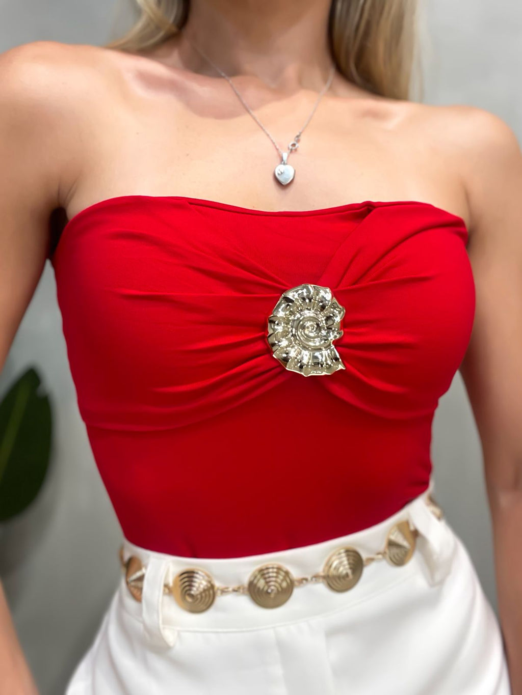 Body em Poliamida Sem Alça com Lapela e Fivela Marcela Ref. 1813