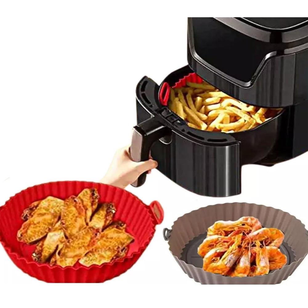 Com a Bandeja de Silicone as manchas de óleo não ficam impregnada na sua fritadeira elétrica, facilitando a limpeza e aumentando a vida útil da peça. As bandejas de silicone para fritadeira são uma excelente alternativa aos revestimentos de papel descartáveis. Elas são duráveis, assim você economiza dinheiro e ainda ajuda o meio ambiente. Evite de uma vez por todas que resíduos de alimentos ou óleo entrem na Air Fryer e evite que os alimentos grudem nela. As Bandeja de silicone são totalmente laváveis na máquina de lavar louça e ajudam você a economizar seu tempo e energia após o cozimento. São um acessório de cozinha indispensável para Air Fryer, panelas a vapor, fornos, panelas instantâneas e micro-ondas, é uma ótima maneira de ajudá-lo a assar. A Bandeja Siliconada é reutilizável, feita de silicone de qualidade para produtos alimentícios, possui material macio, boa resistência ao calor e temperatura de operação variando de 20°C a 240°C.